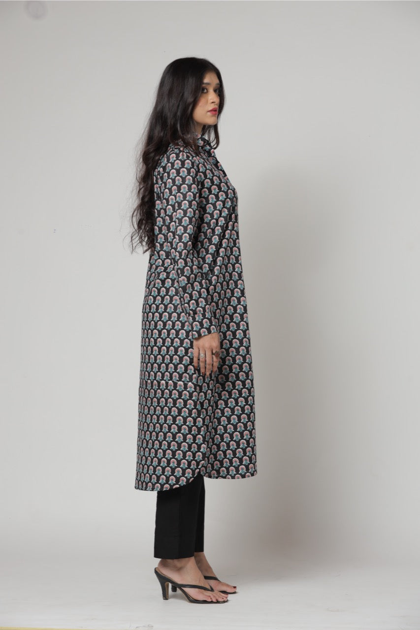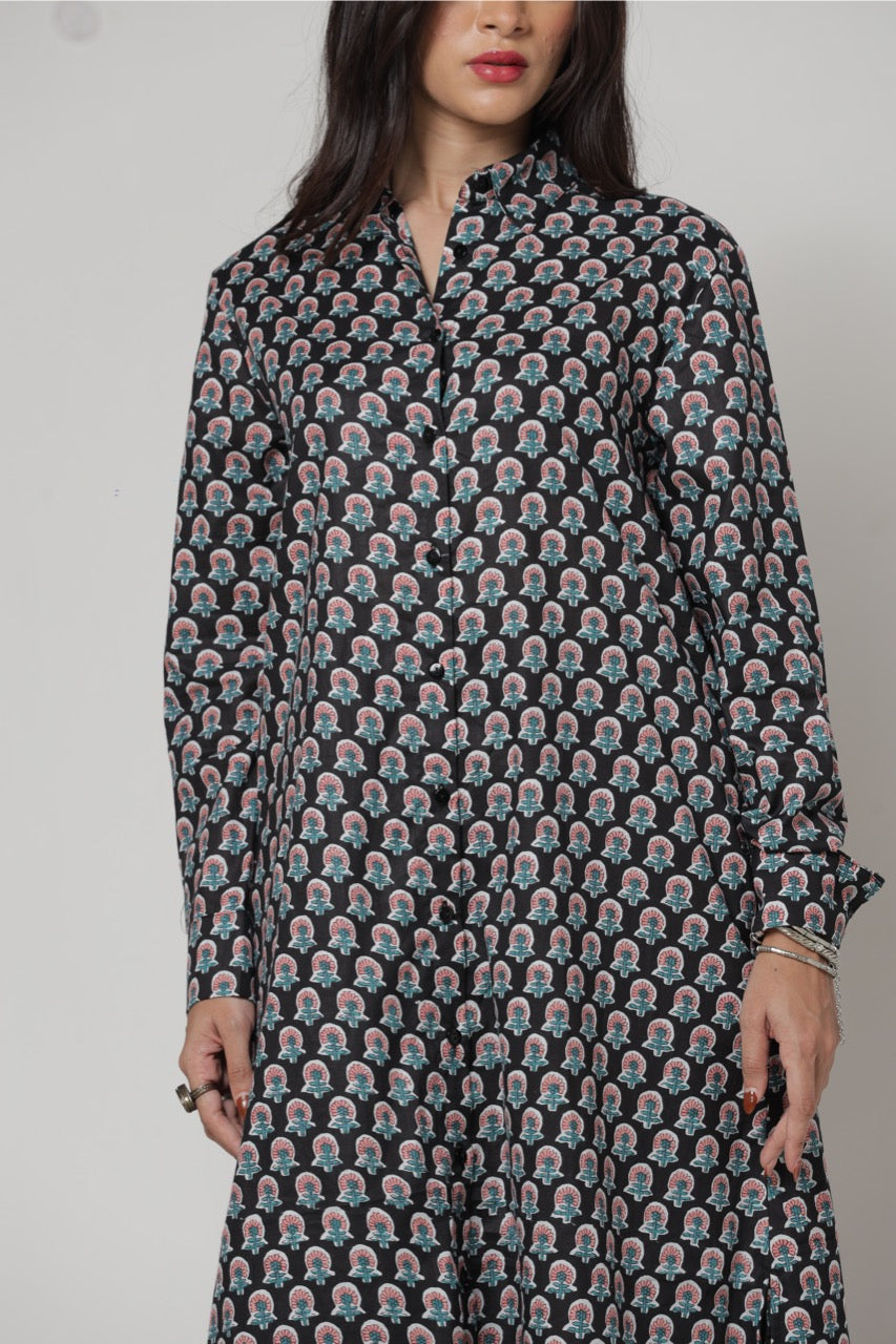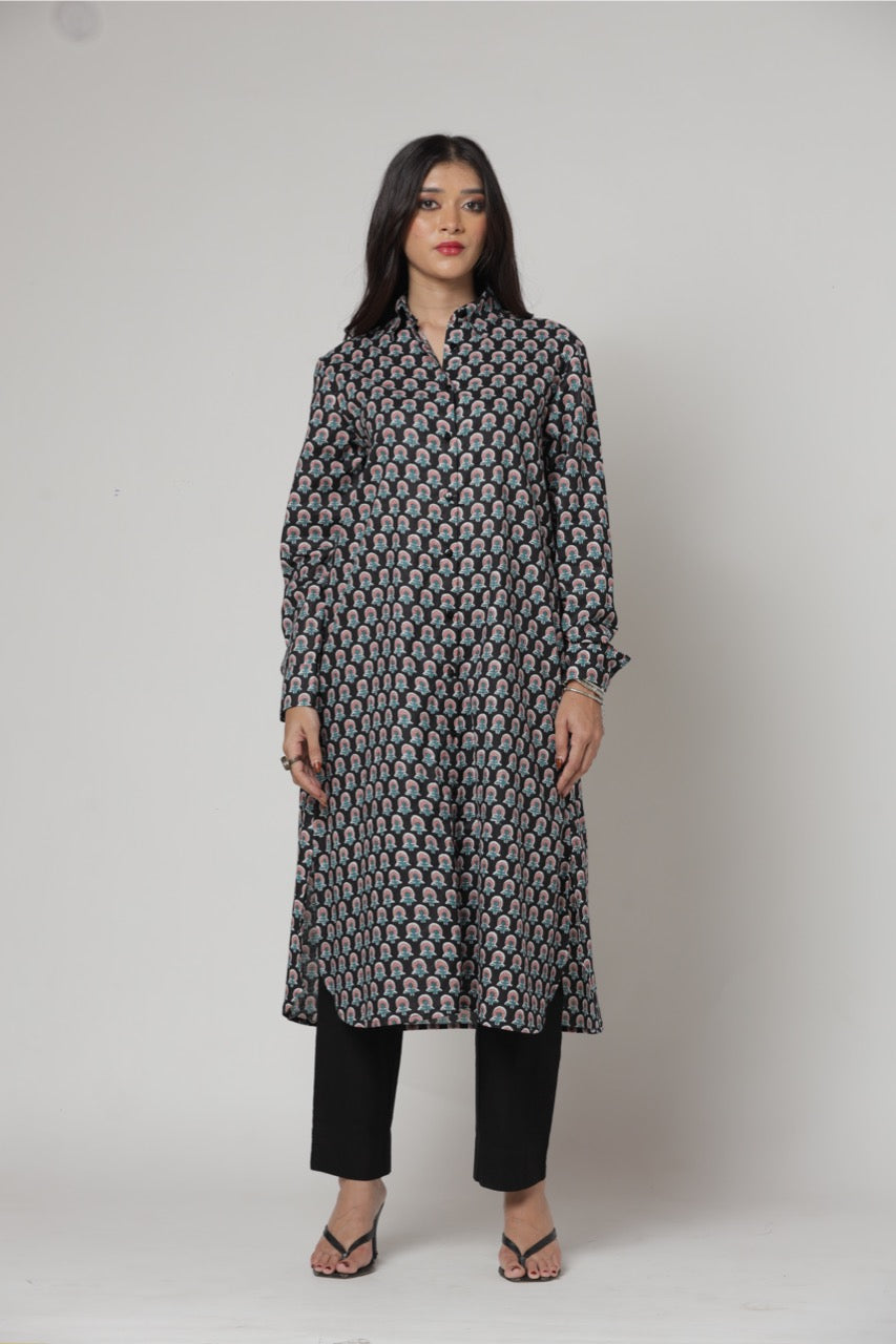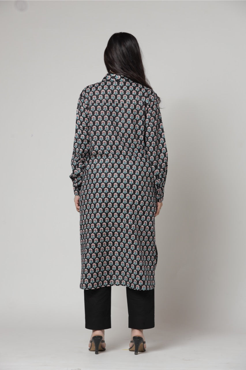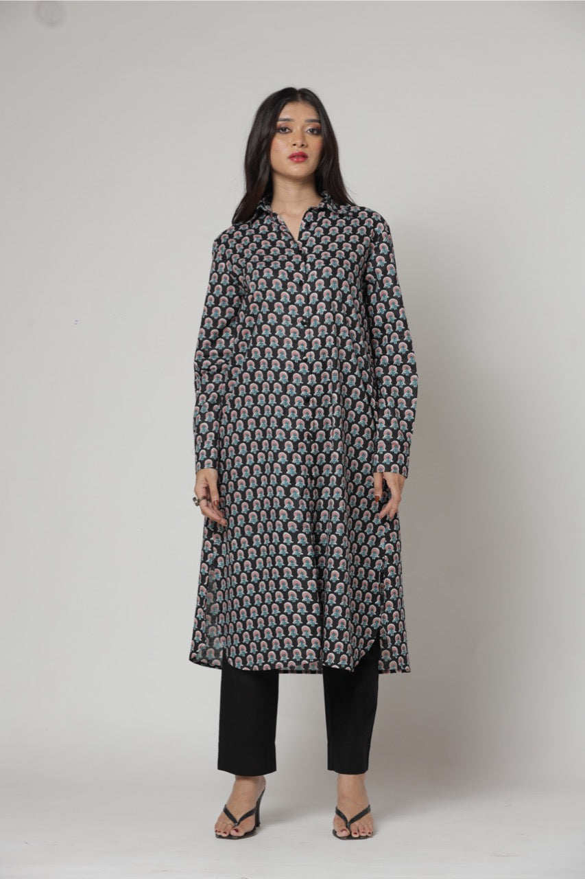 Button Down Long Shirt and easy to wear matching pants made with 100% cotton printed fabric. Simple Sequin handwork elevates the style making it suitable for a smart casual occasion.