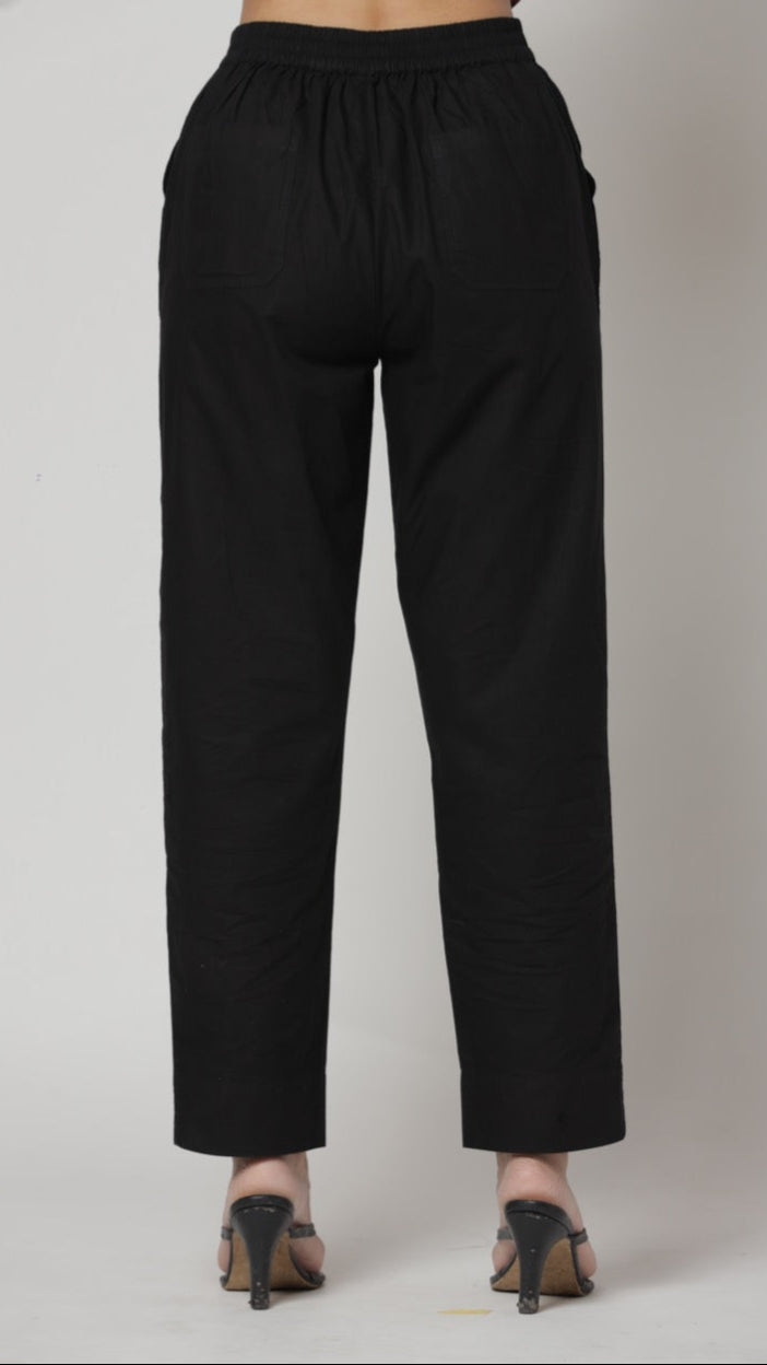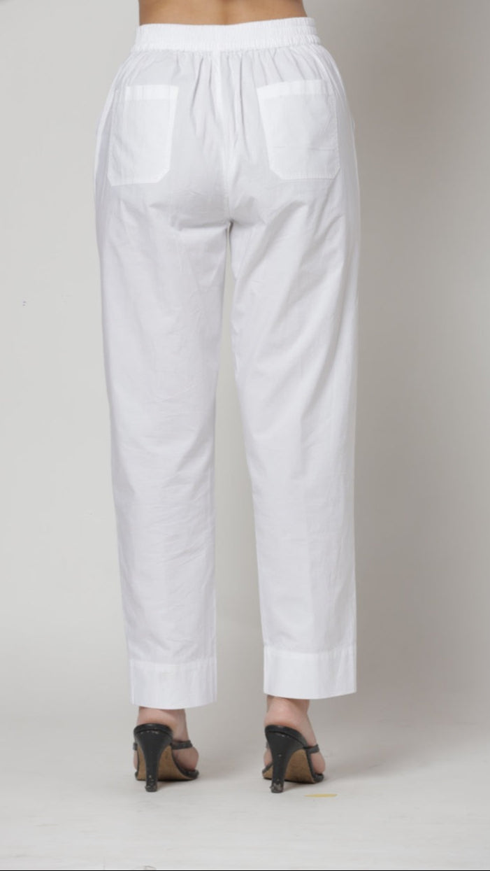 4 pocket Elasticated waist straight leg pant with wide bottom hem made with 100% cotton Cambric. Pant with Versatility that suits any of our tunics and tops.